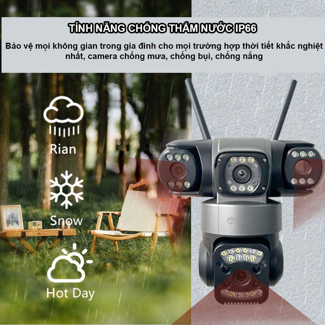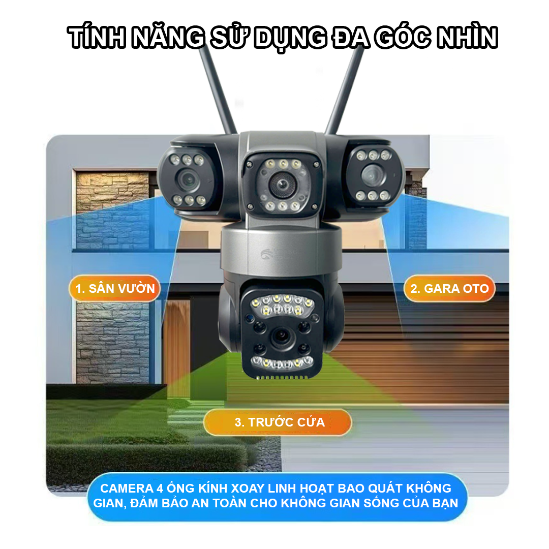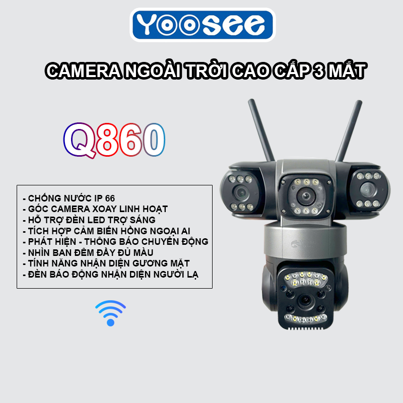 ✨ [New 2025 – Q860] Camera Yoosee 4 Mắt Kép Ngoài Trời Promax, Chính Hãng. Với 3 ống kính tách biệt, quan sát 3 góc khác nhau trên 1 camera. Đặc biệt, 3 mắt có thể xoay nhiều hướng, cực kỳ tiện lợi. Mua 1 được 3, thật sự tiện ích.